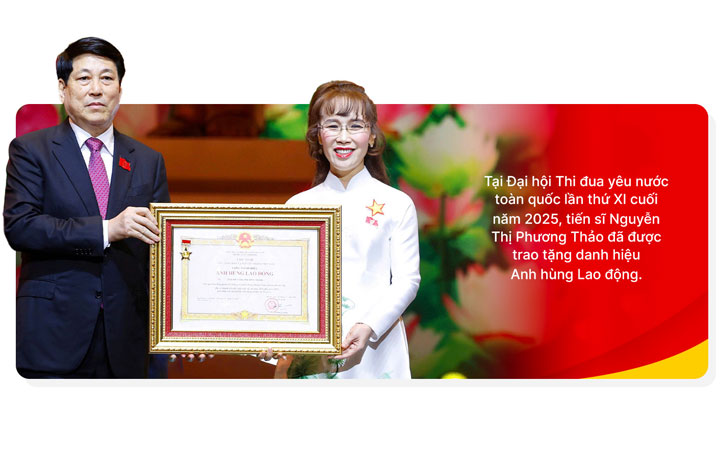 Tại Đại hội Thi đua yêu nước toàn quốc lần thứ XI cuối năm 2025, tiến sĩ Nguyễn Thị Phương Thảo đã được trao tặng danh hiệu Anh hùng Lao động.