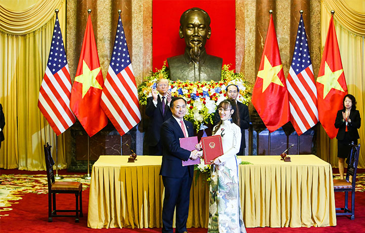 Chủ tịch nước Trần Đại Quang và Tổng thống Hoa Kỳ Donald Trump chứng kiến Lễ ký kết tại Hà Nội